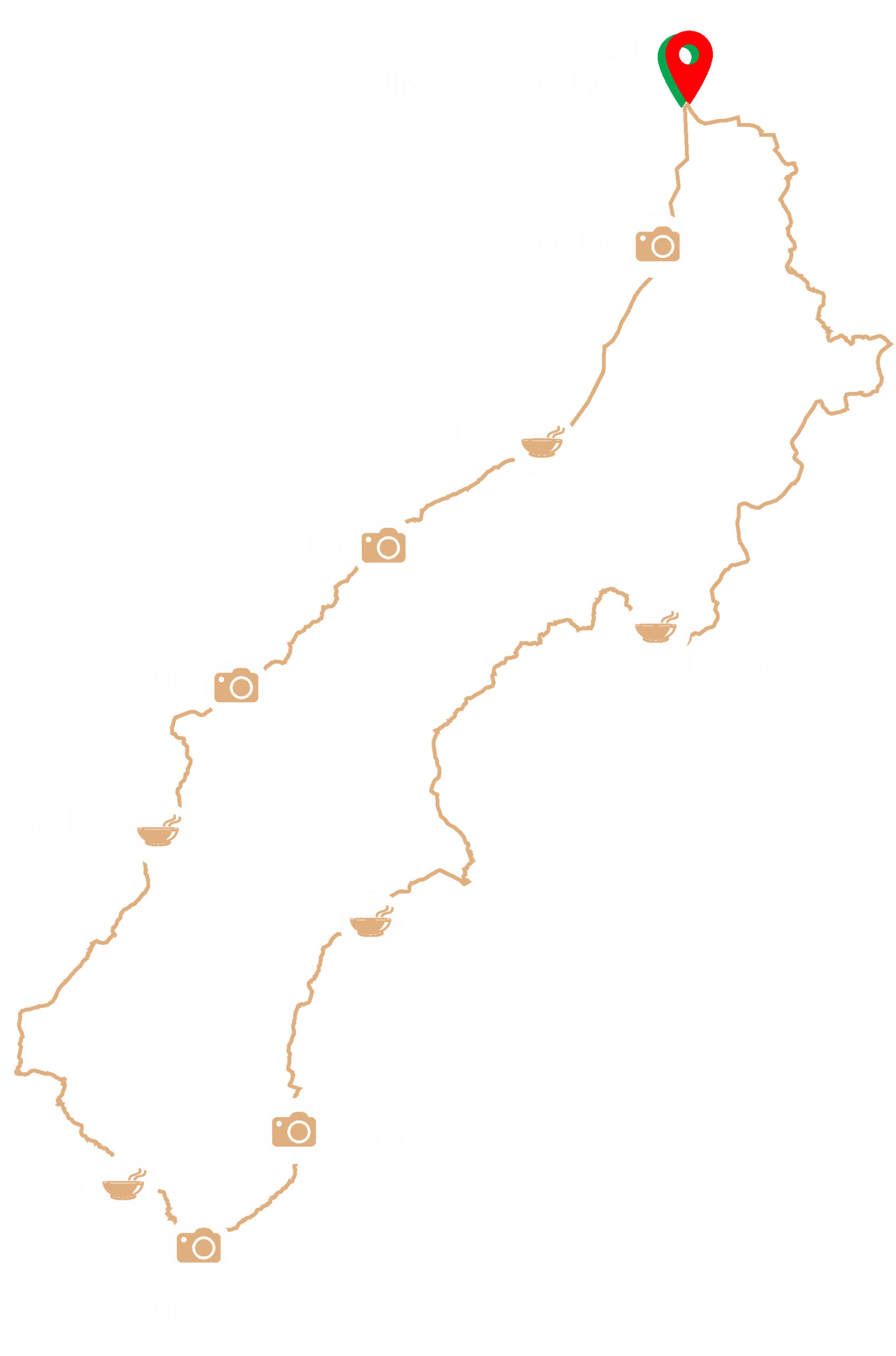 Hành trình bắt đầu từ thị trấn Phong Nha, đi ngang Núi Đôi, băng qua Thung lũng Sinh Tồn, lội suối ở Hang Thủy Cung trong xanh, rồi tiếp tục vào vùng Cây Trương, nơi xưa kia những người lính Trường Sơn đã kéo dây điện băng rừng. Từ đây, đường chạy trở nên technical hơn, với những đoạn dốc, rễ cây, và vách đá tai mèo sắc nhọn, dẫn bạn đi qua Thung lũng Hung Thoòng, khu vườn Nhật tự nhiên giữa rừng sâu, men theo Hồ Ma Đa xanh ngọc và Hang Voi hùng vĩ.